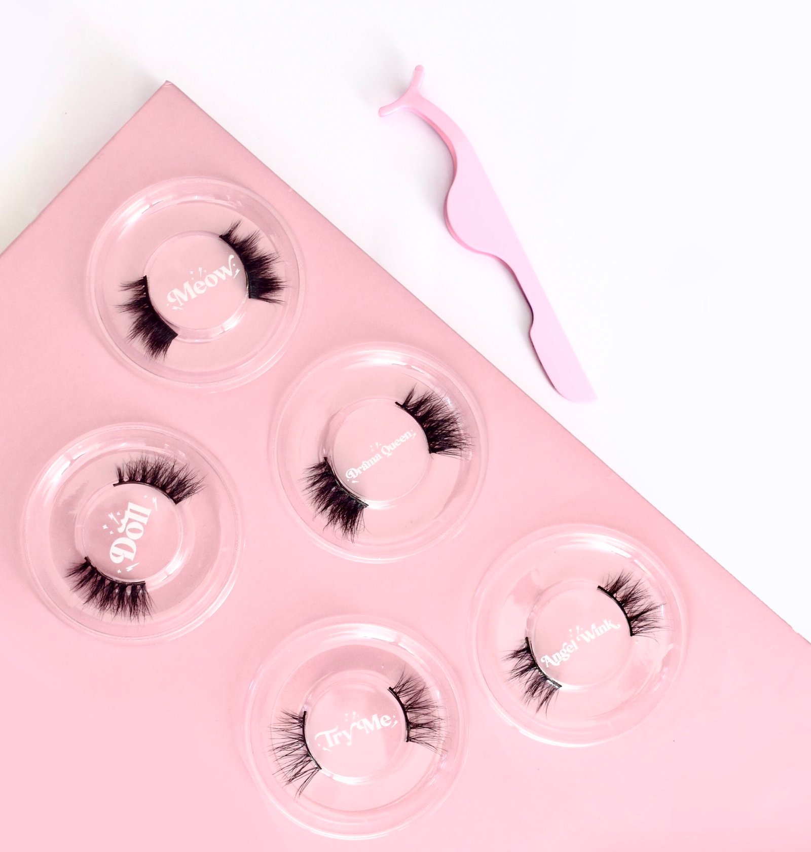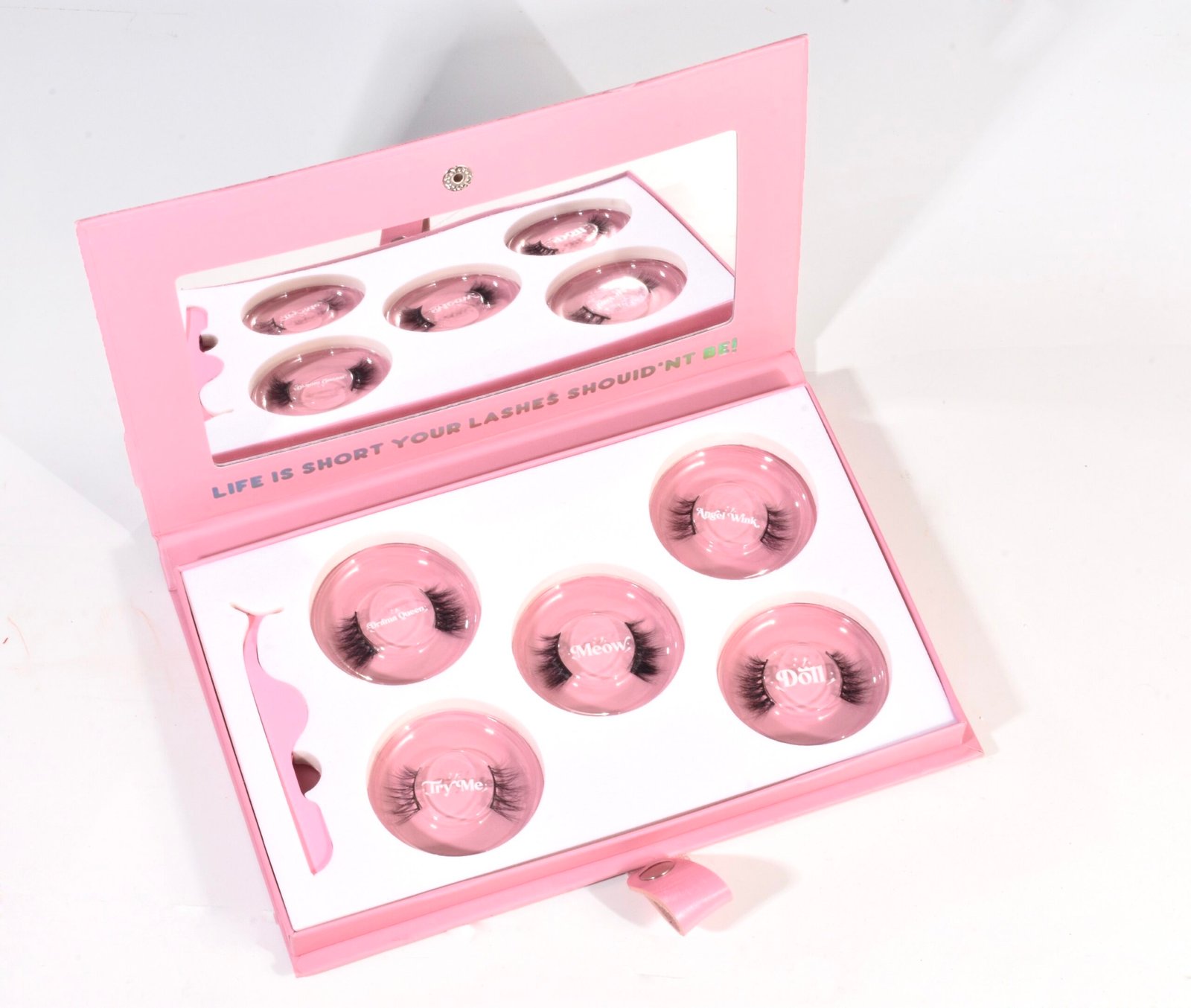 خمس رموش طرفية بقصات متنوعة الكثيف و الخفيف و المتوسط + مرايا + ملقط لتثبيت الرموش ، يمكن إعادة إستخدام الرموش أكثر من 10 مرات .